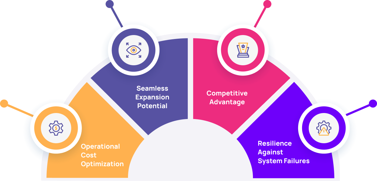 Microservices architecture offers scalability, faster time to market, and flexibility to ensure your platform can handle increased traffic efficiently, ensuring consistent performance.